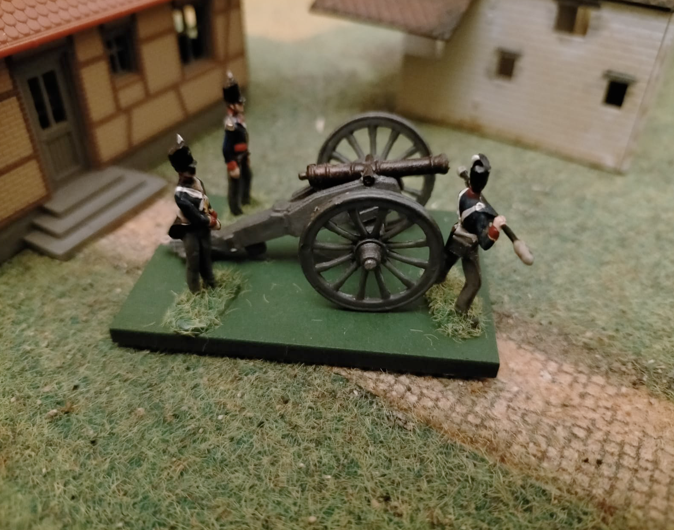 The firing area, which is a rectangle of the width of the base of the cannon (also diagonally), must not cross allied troops. With a reduced battery (one or two real cannons) it always rolls four dice but with -1 of penalty at each useful outcome and then causes a loss for each dice with which it draws 1 and 2.