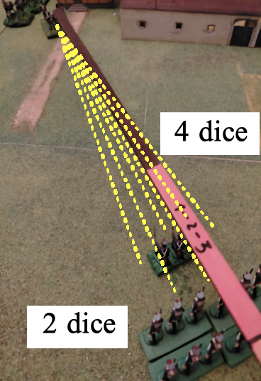 Cannon and Howitzers shooting a canister roll four and two dice respectively and hit with 1, 2 and 3 against the closest unit within their respective sector. The main target must always be the closest and, in any case, the most threatening.
