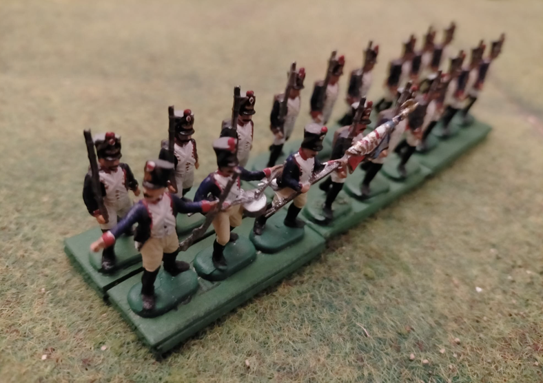 - When the companies are inside the line battalions they act and shoot (at 20 cm) like the other line troops and, when they are separated but close to the rest of the battalion to act as a screen, they act as light infantry (firing up to 30 or 40 cm depending on the type of weapon supplied).