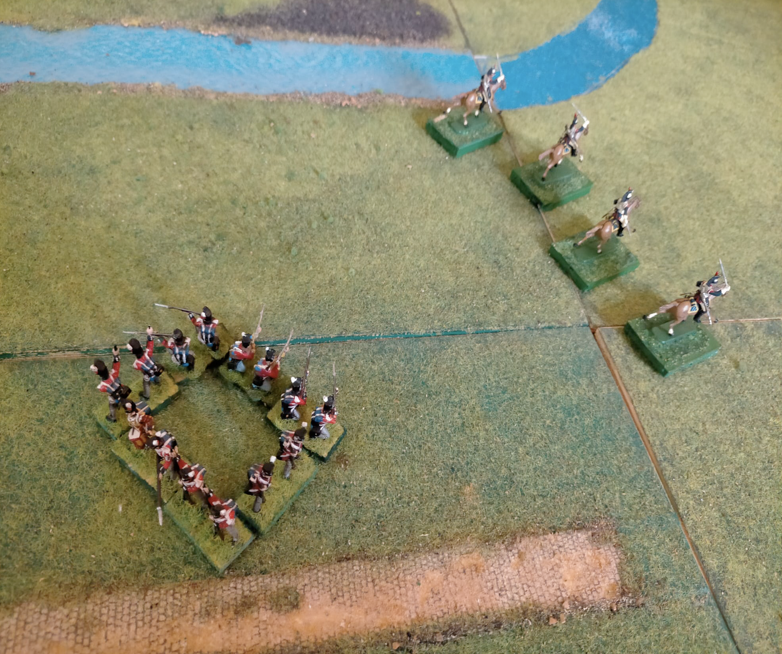 In our game the resolution of an attack is calculated only on the basis of the reactivity index of the square. Basically about his ability to keep a cool head and, on unpredictable fortuitous events represented by the roll of the dice, such as the episode of a falling horse that opens a gap in the formation or soldiers who panic. British infantry, for example, has (+ 4). To break the square, the attacking Cavalry must throw three dice and simultaneously get three numbers higher than the reactivity index. Against a Militia, for example, must draw three dice of more than 2. It has no relevance in this case the type of cavalry. If the cavalry is charging it has a bonus of 1 on the result of one die (only one of the three).